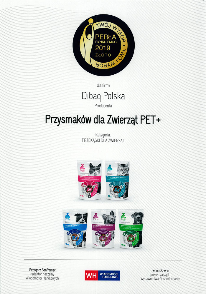Tím prvním bylo získání ocenění v rámci průzkumu „Najlepszy Produkt – Wybór Konsumentów®“, jehož výsledky byly vyhlášeny v lednu letošního roku. Reprezentativní vzorek 1 000 respondentů, spotřebitelů, vybíral nejlepší produkty a značka thePet+ si v rámci kategorie Výrobky pro zvířata vybojovala zlatou medaili.